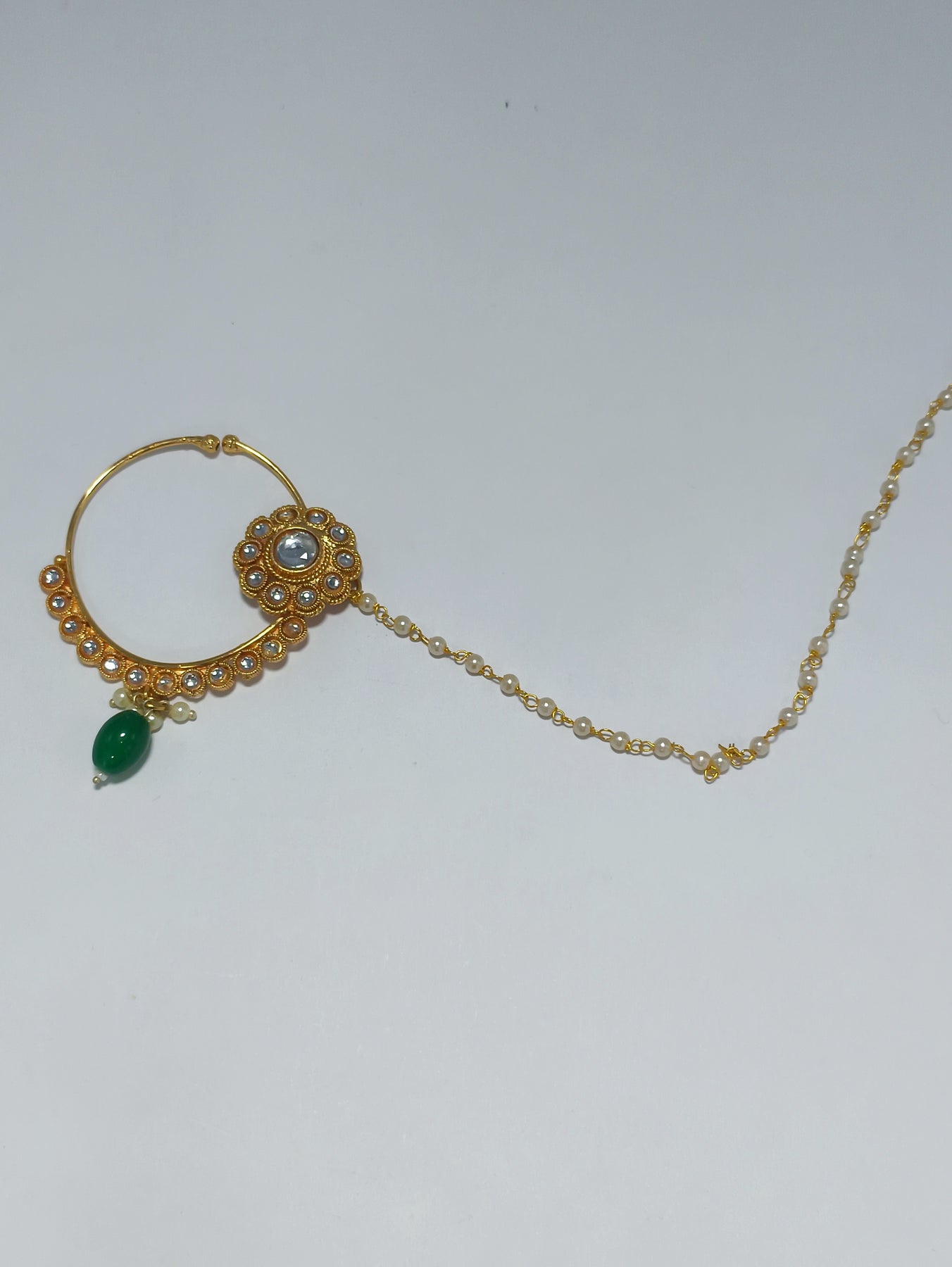 Royal Bridal collar with long Malla, jhumkas,Nath and headpiece.