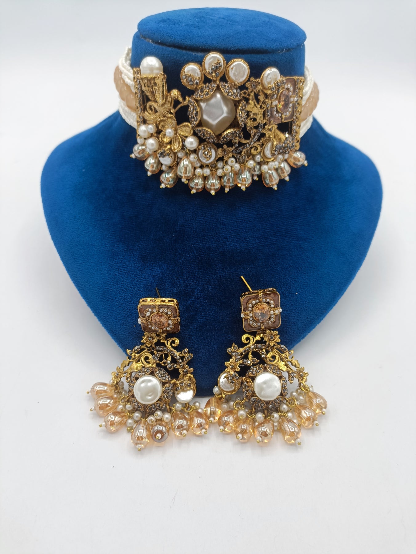 Statement Gold Platted Champion Turkish choker with earrings, A perfect fusion choker made of fresh pearls, Kundan , minakari.