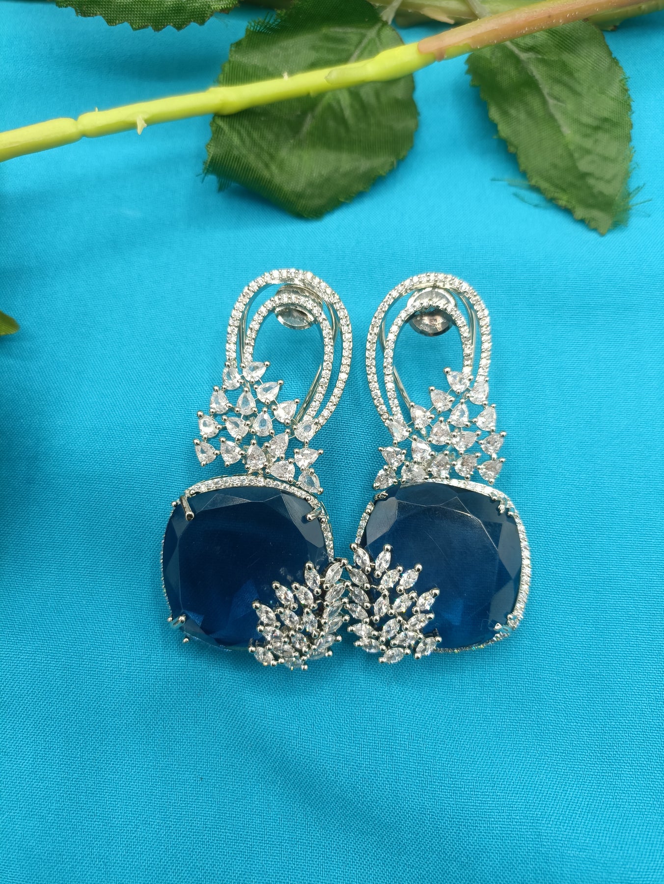 Stylish long diamond cut earrings with premium stone work, clip lock is provided for perfect fit. Unique color range is available emerald green, Amethyst, sapphire and silver.