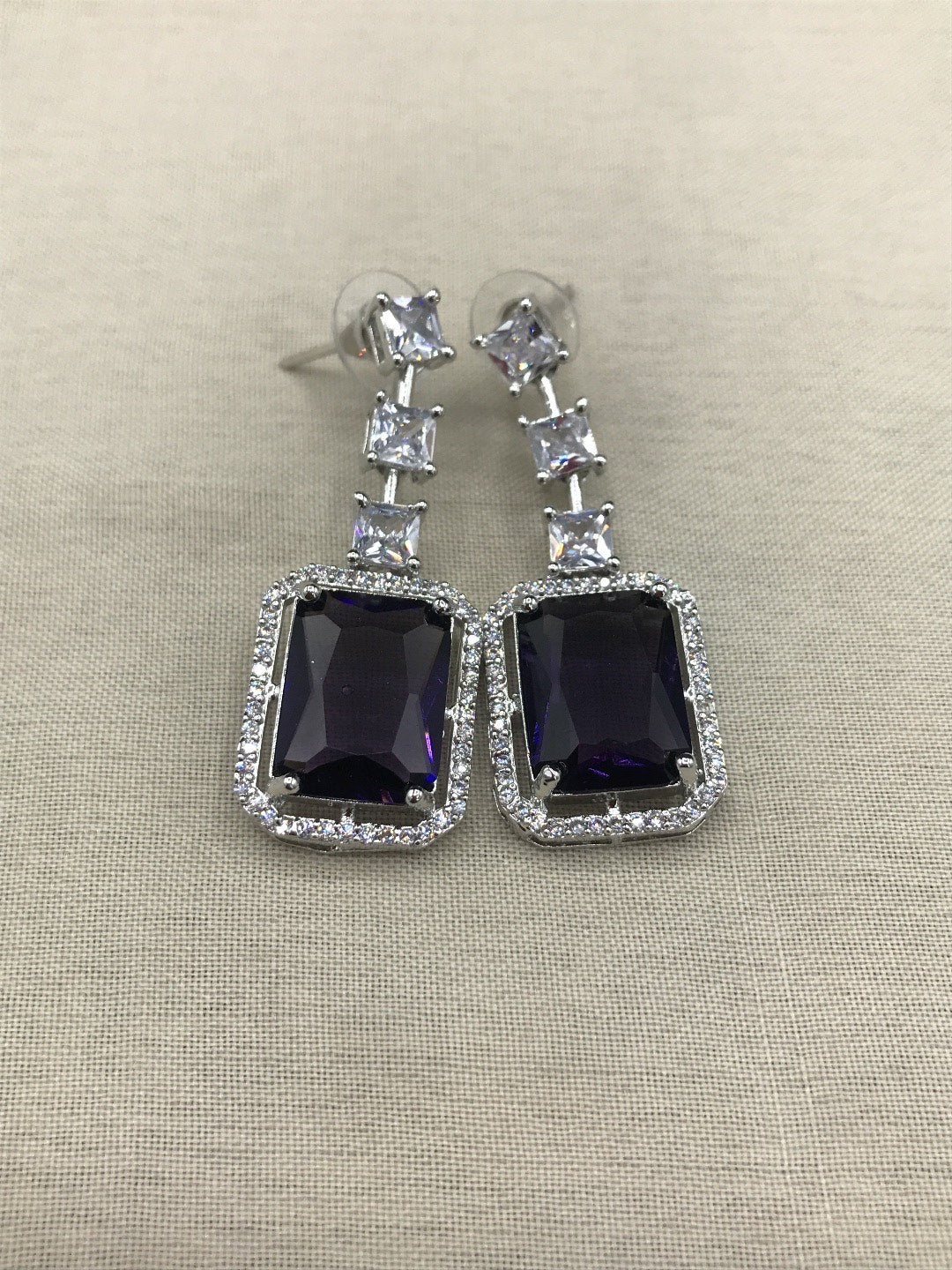 Square shaped long neckline with long earrings in silver polish. This stunning neckline is available in orange and purple color.