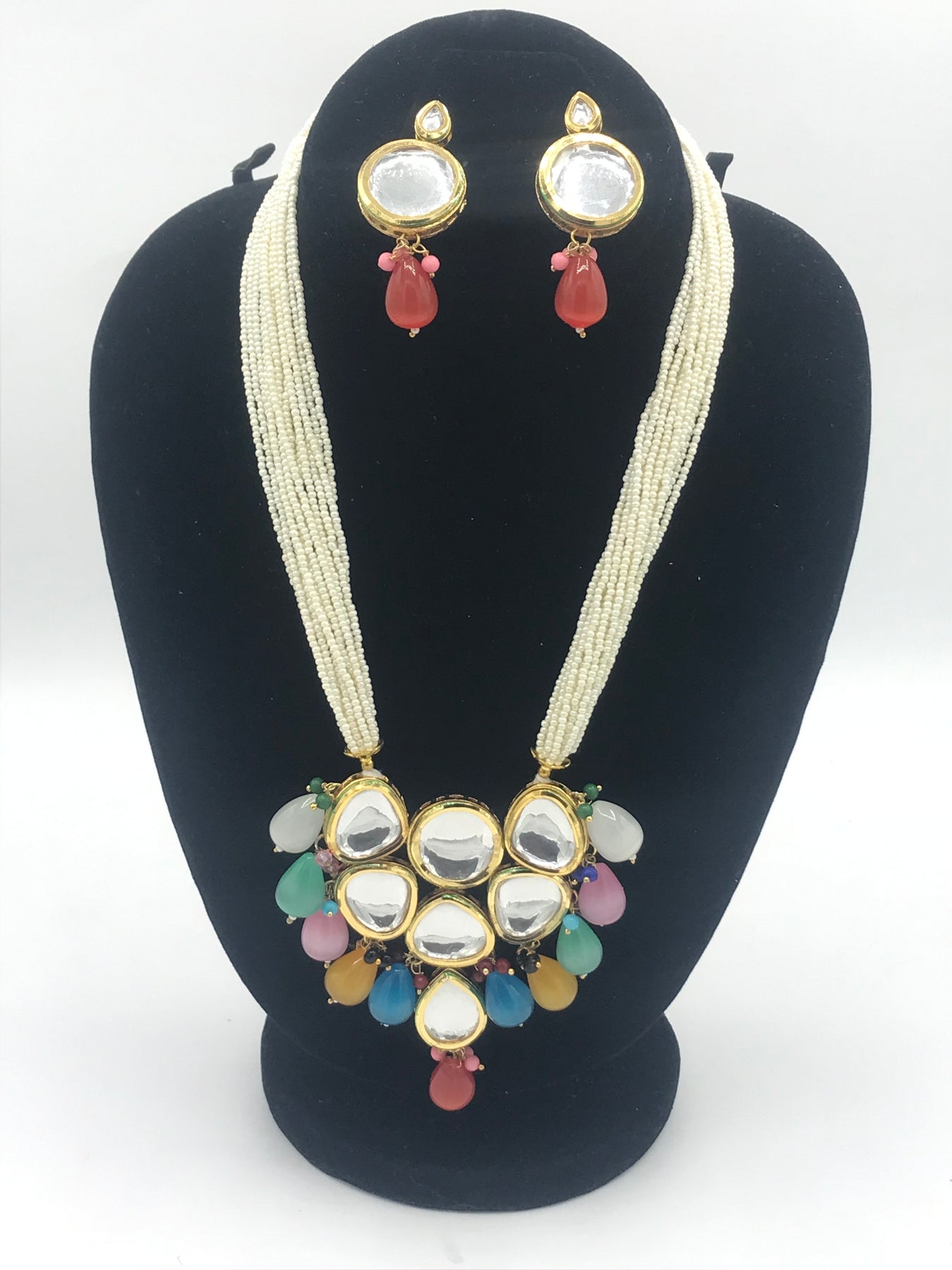 Multi kundan mala with back meenakari having moonalisa beads.