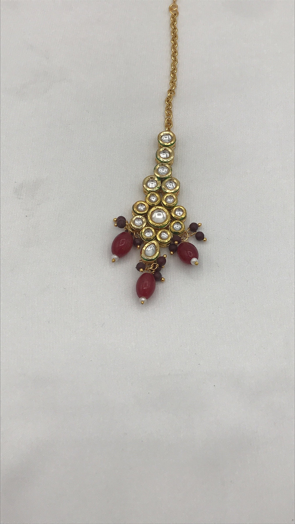 Luxury kundan bridal set with earrings and maang tikka, back is with premium meenakari