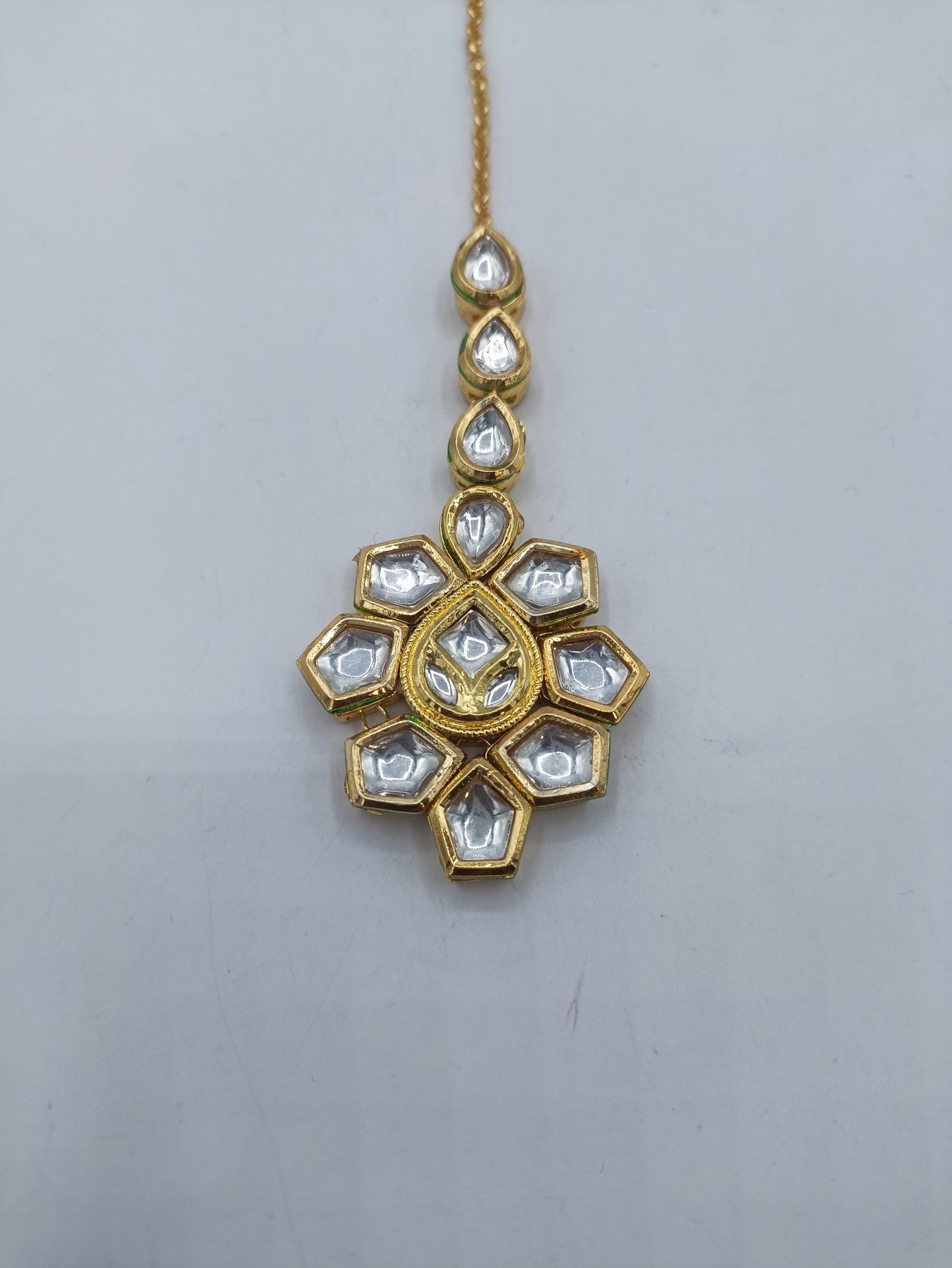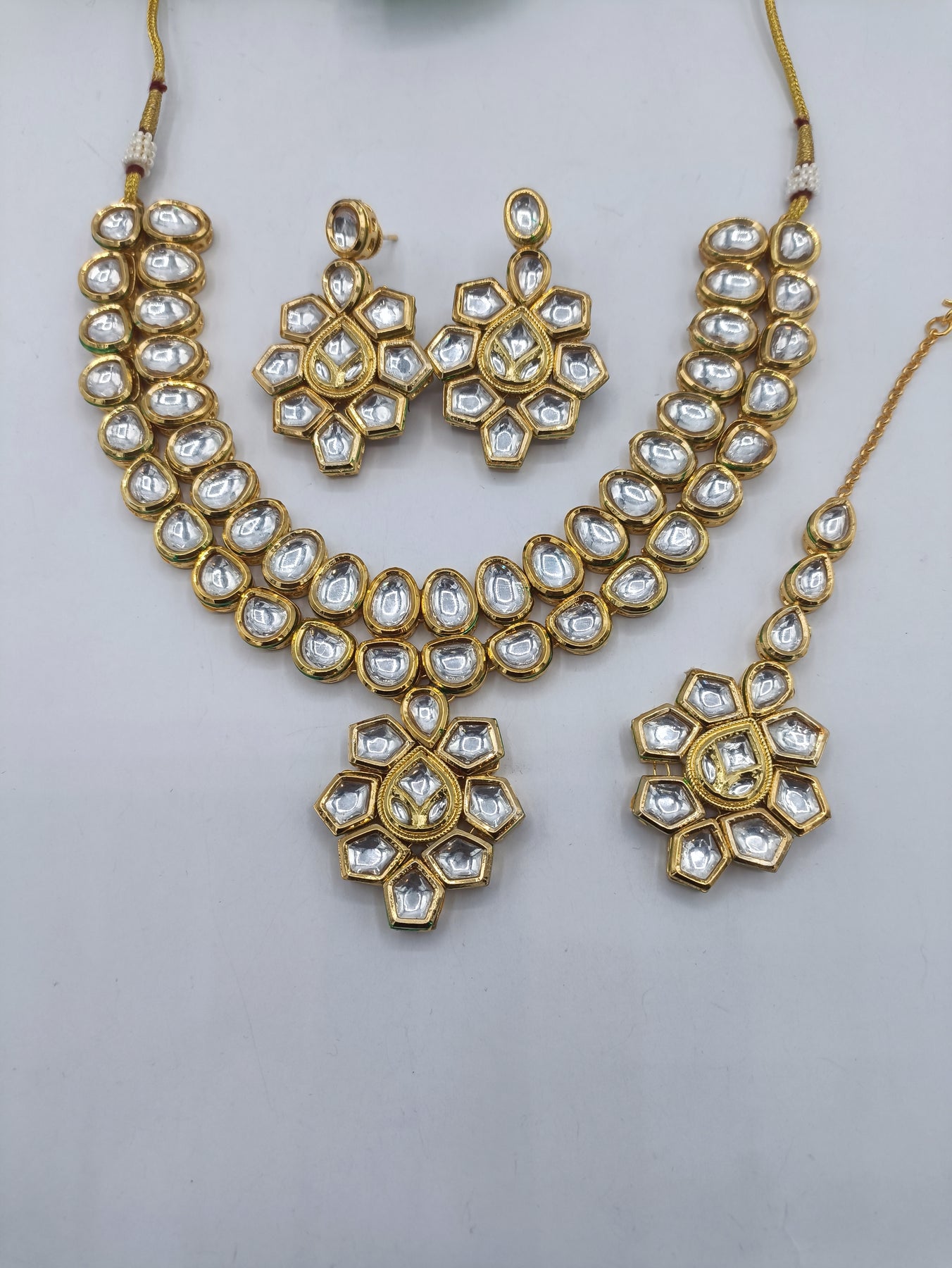 Premium Kundan necklace with earrings and tikka, back is with meenakari .