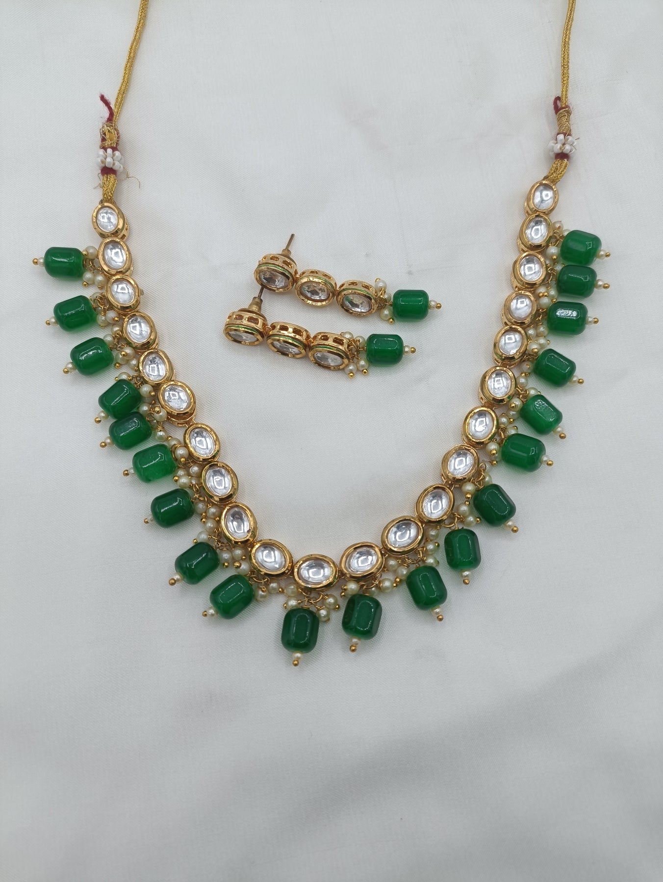 Single layer Kundan necklace with back meenakari in bottle green.