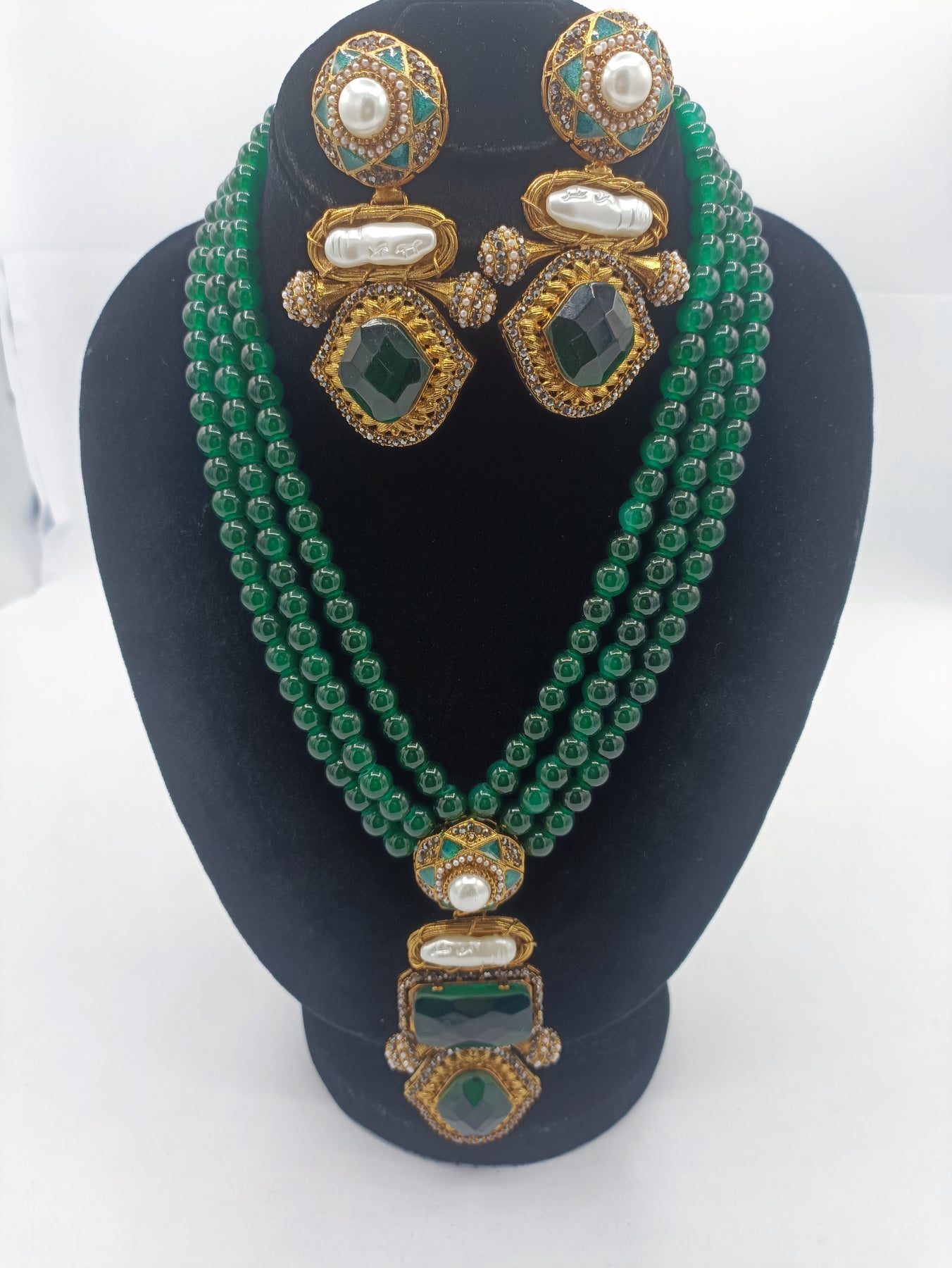 We crafted this Mala for fresh water pearls lover, perfect for making a statement at special occasions. Long earrings are included with Mala to complete your look.
