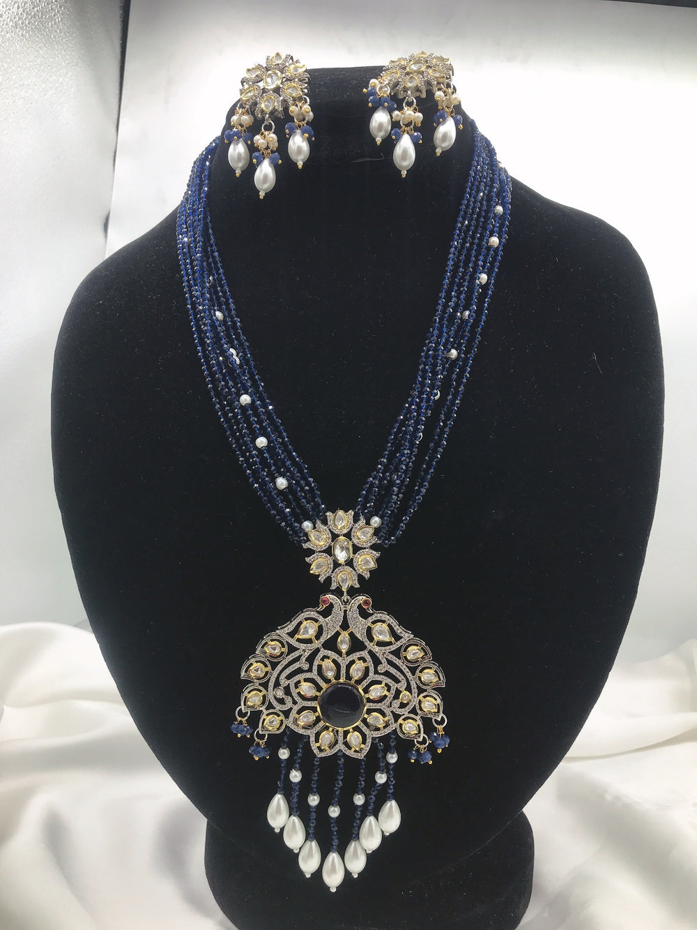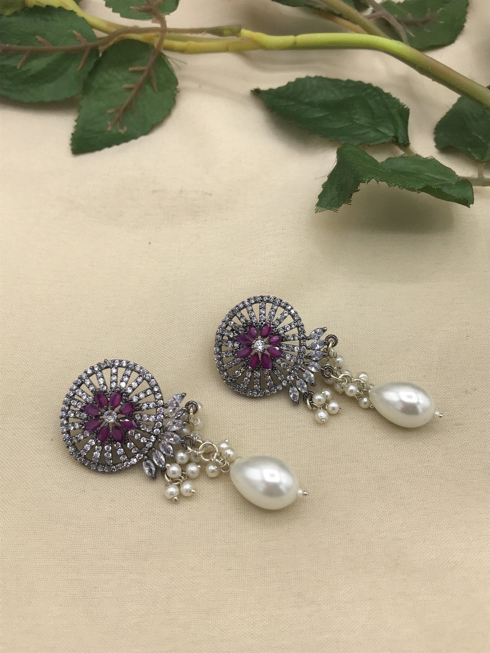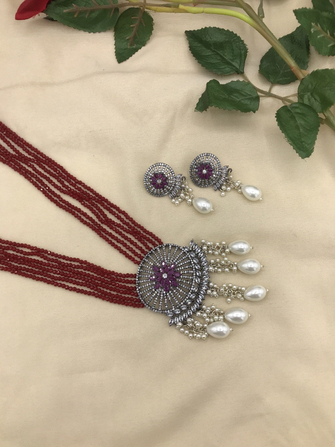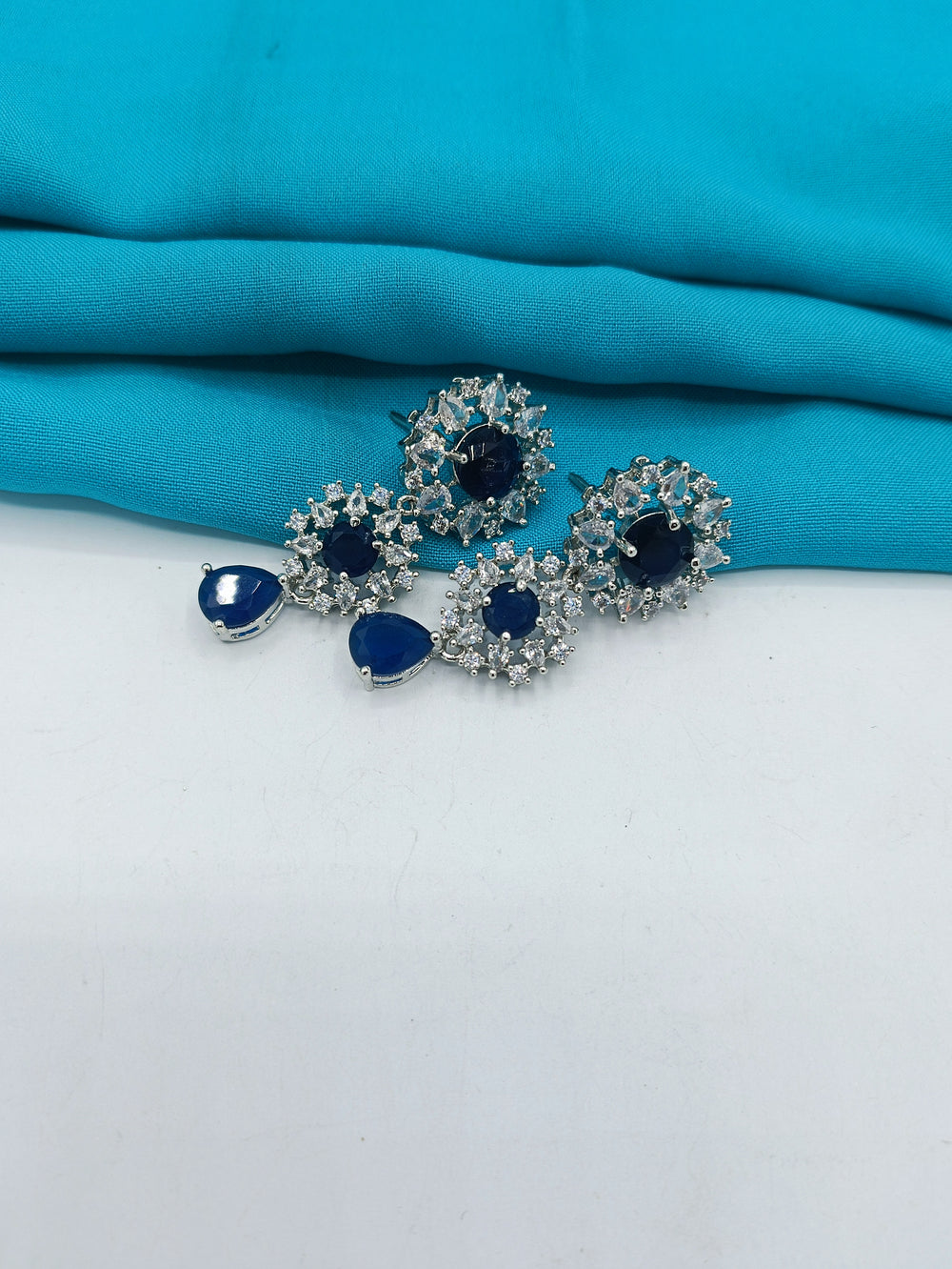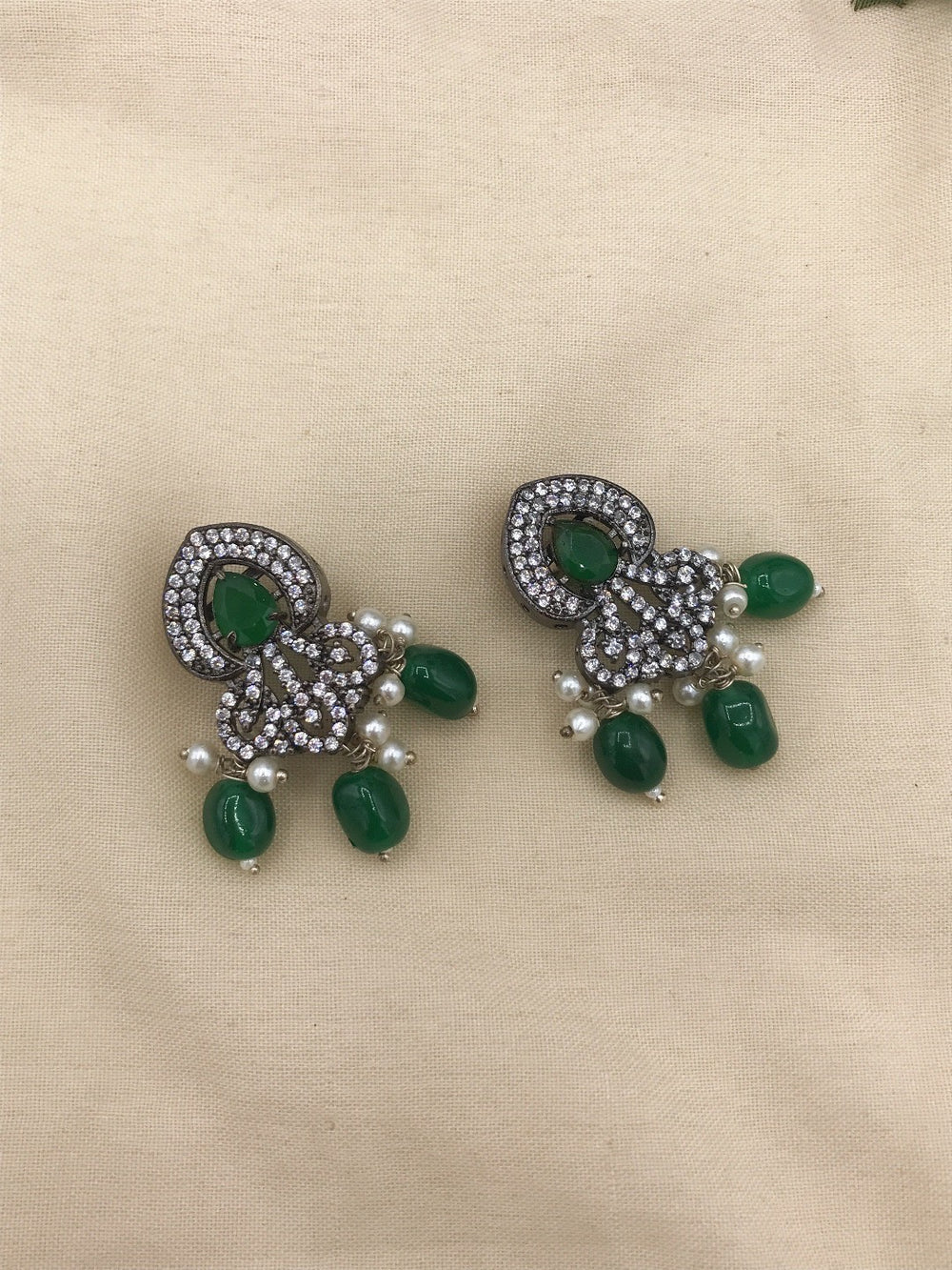 This marvelous american diamond necklace in designed in square shaped diamond using 3D flowers to enhance it's beauty. Available in emerald green.