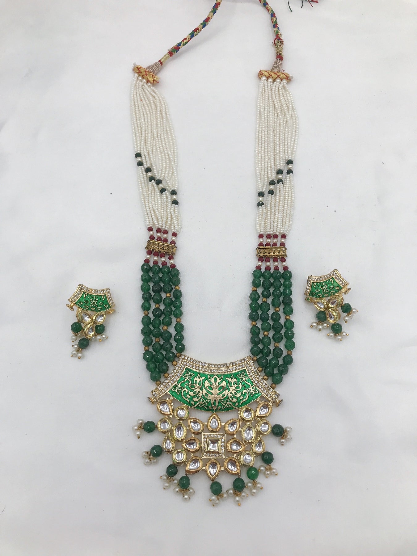 Turkish inspired kundan mala with premium peri, special Turkish artwork is engraved in center.