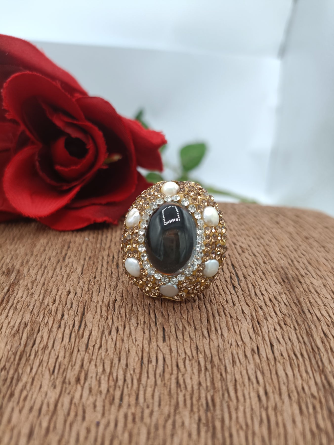 Fresh water pearl ring with Turkish artwork. Ring band is adjustable.